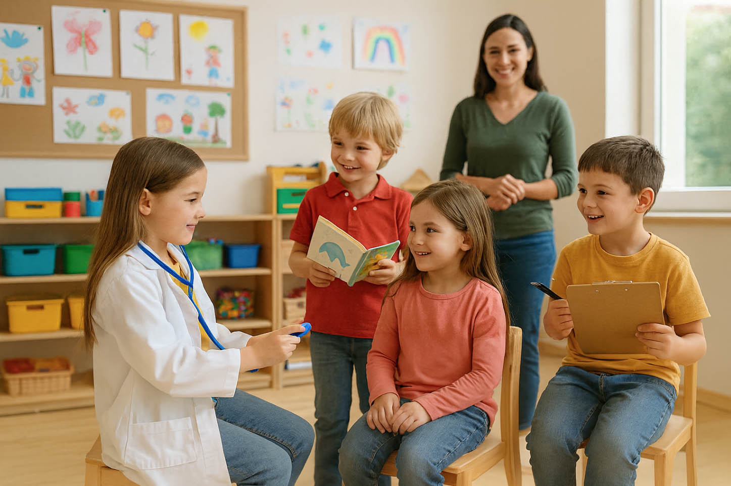 Στην ηλικία 2–7 ετών, τα παιδιά αναπτύσσουν τη γλώσσα, τη φαντασία και τη συμβολική σκέψη. Μέσα από το παιχνίδι ρόλων, τις ιστορίες και τις καθημερινές εμπειρίες, χτίζουν τις βάσεις για τη μελλοντική τους λογική και κοινωνική ανάπτυξη.