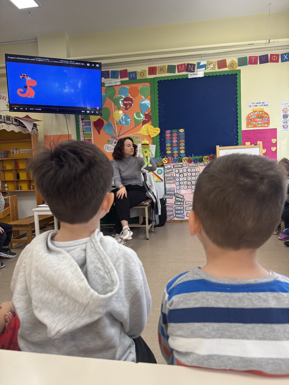 Σήμερα, Τρίτη 29 Οκτωβρίου, ξεκινήσαμε τα Αγγλικά μας μαθαίνοντας να χαιρετάμε (Hello!) και να συστηνόμαστε στην ξένη γλώσσα (I’m Mary). Είδαμε βίντεο για το πως ρωτάμε το όνομα κάποιου στα Αγγλικά (What’syourname?)